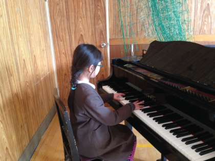 3組は、「あの雲のように」です。3拍子の難しい伴奏にも、子どもが挑戦しています。