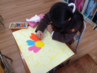 1学期からパスを使って絵を描いていますが、随分上手に色をぬることができるようになりました。