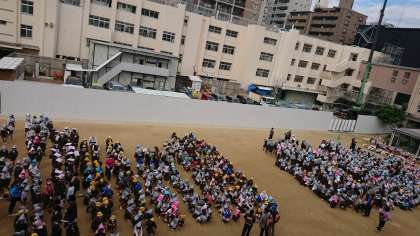 4年生と5年生は密を避けるために、あみだ池公園へ避難しました。