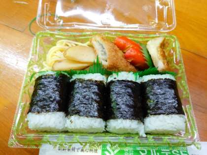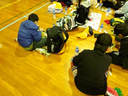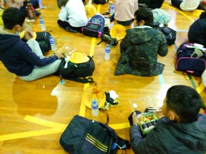 山頂は風が冷たかったので、下山してからのお弁当となりました。