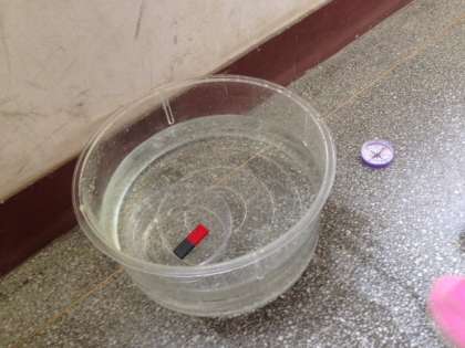水の上に浮かべたじしゃくや、糸でつるしたじしゃく。指で押したりすると、自由に動いたりくるくる回ったりしますが、どんなふうに止まるのでしょうか?今日は、これについて調べました。
