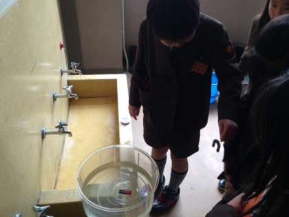 場所によってちがうのか確かめるために、教室や運動場や職員室前など、学校内のいたるところで実験しました。