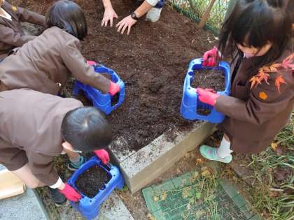 生活科の学習で、チューリップの球根を植えました。