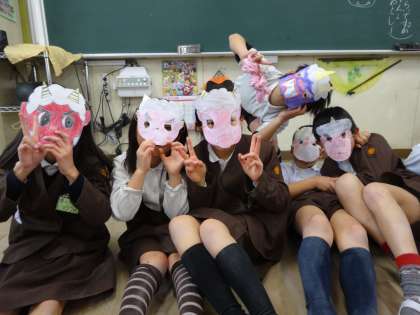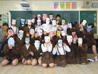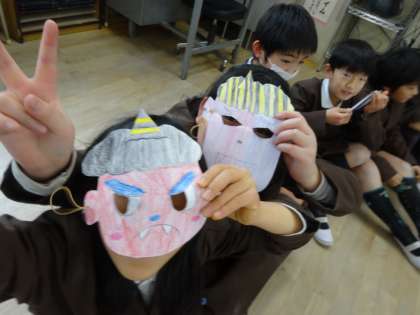 今日は節分です。給食で邪気を追い払い、健康や無病を願うイワシと豆を食べたあと、心の中の悪い鬼を退治する豆まきについて学びました。それぞれが思い思いの鬼のお面を作り、退治するにはどんなことを心がければ良いのか考えました。