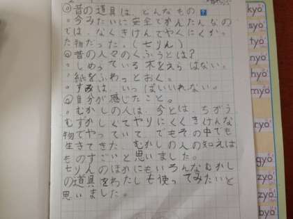 昔の道具は使いやすかったか?昔の人びとはどのようなくふうをしたのだろう?今日の体験から、実感的に学ぶことができました。