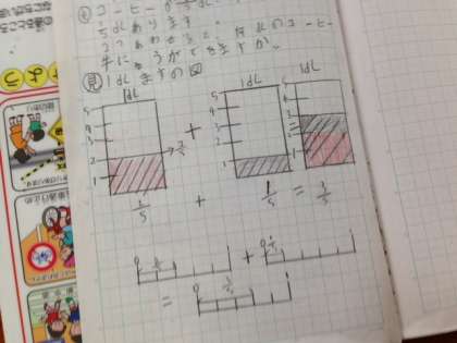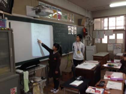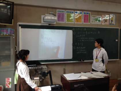 自分の考え方をノートに書き、それを書画カメラに映してみんなに発表しました。茂山先生からは「ヒントカード」をもらったり、みんな楽しんで学習できました。