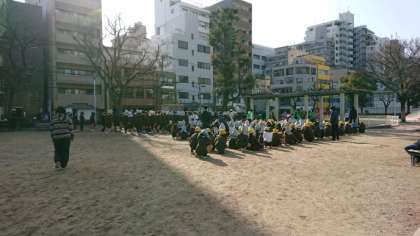4年生・5年生は運動場での密を避けるために、あみだ池公園に1次避難しました。
