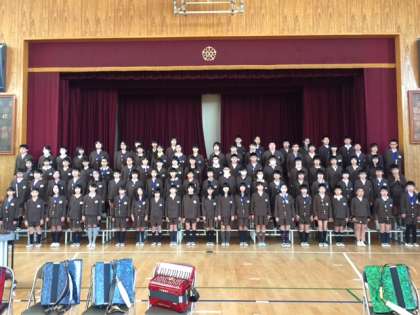 旅立ちの会に向けて、講堂で合唱や合奏の練習が始まりました。