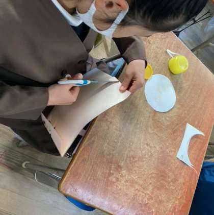 紙版画をする予定です。今日は、紙で自分の顔の版をつくることに励んでいました。道のりは長いですが、コツコツ進めていきます。