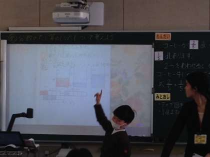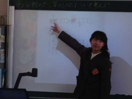 書画カメラ、電子黒板を使って、考え方の発表が上手にできました。