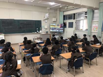 卒業を祝う会に、教室でのリモート参加をしました。様々なことでお世話になった6年生に、感謝の気もちを込めてお祝いしました。