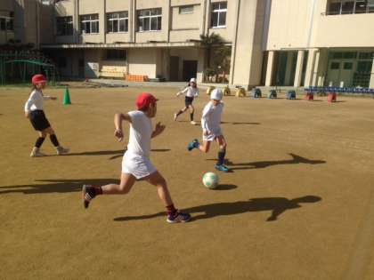 「パスをより多く回そう」というめあてを持ち、よく周りを見ながら声を出し、よく走り、積極的にパスを回しました。