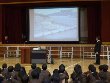 毎日新聞社編集局社会兼化学環境部の根本記者が、、約4年前に福島、岩手、宮城の東日本大震災の被災地を計7週間取材された体験を4年生に話していただきました。