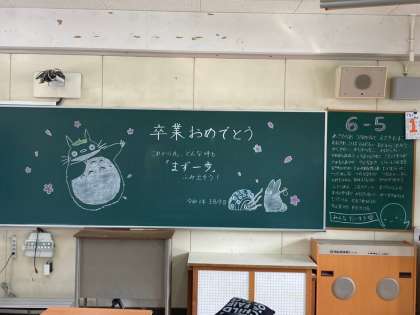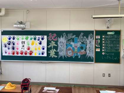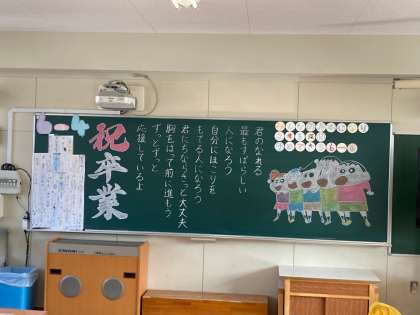 各学級の教室には、担任の先生からの心温まるメッセージが。