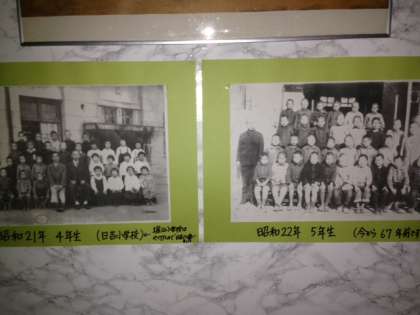 先週、堀江地域の西村さんが下さった戦争があったころの資料を、3年生教室前の廊下に掲示しています。