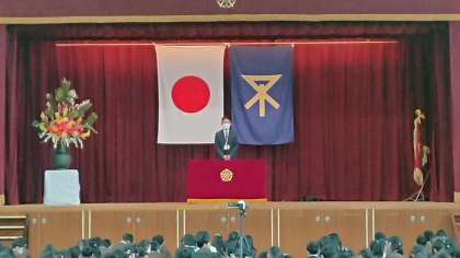 学校長からは今年1年を、新しい仲間とともに頑張って、楽しい学校生活を送るように、また、新型コロナウイルス感染症への対策をしっかり行うようにとの話がありました。