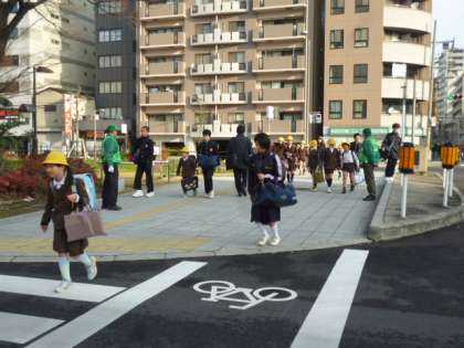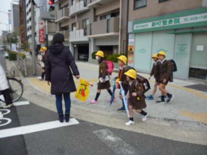 毎月、月初めの登校日には、地域の見守り隊のみなさんが、また、毎月第一火曜日には、PTA役員さんたちが、児童の登校の安全を見守ってくださっています。