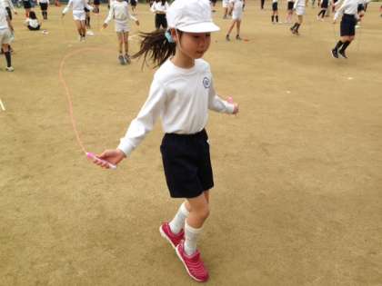 五分間で記録を取ると、合わせて500回以上跳べる子どもたちがたくさんいました。これで、一分間に100回のペースです。