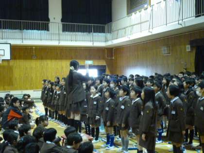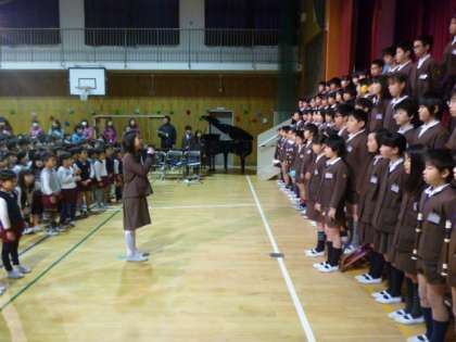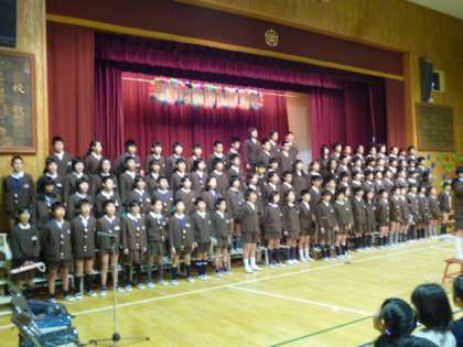今日は、幼稚園児と在校生が、卒業のお祝いを学年ごとにしました。