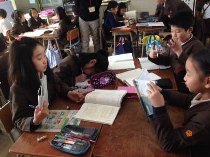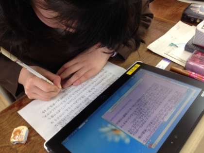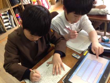 国語では漢字学習や調べる学習が行われています。グループで教え合ったり、タブレットで自分に合った調べ方をしたりと、3年生はこの一年間で自主的な学習態度を、しっかりと身につけました。最近のこういった姿を見ていると、大きく成長したなあと感じます。
