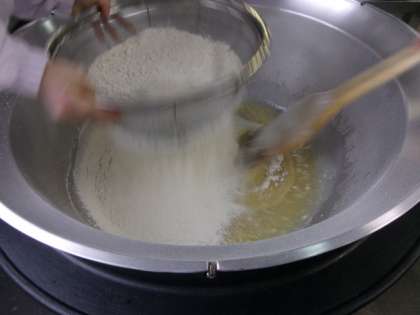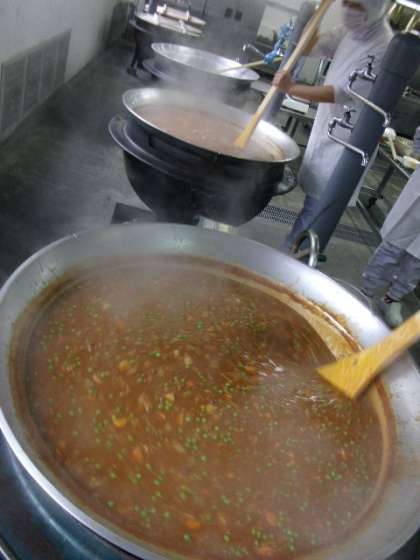 今日の給食に「ハヤシライス」がありました。ハヤシライスのルウは、小麦粉をサラダ油で1時間いためて作りました。最初は白い小麦粉が、時間とともにだんだんブラウンに変わります。このルウを入れてしっかり煮込んだハヤシライスは、一流のレストランにも負けない味わいでした。
