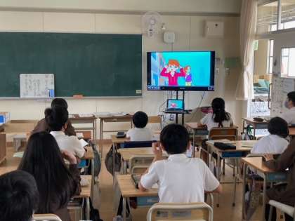 今週からグローバルタイムの取り組みが6年生でも始まりました。動画や歌やアルファベットの発音にふれて、どんどん英語に慣れ親しんでほしいです。