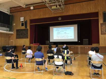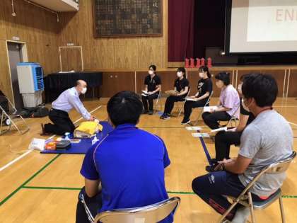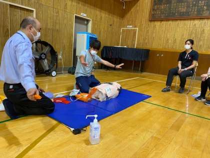 感染症対策を行いながら、講話をお聞きしたり、胸骨圧迫の実技を行ったりしました。
