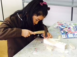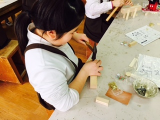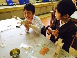 かなづちを使う様子は、真剣そのものです。