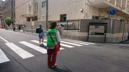 堀江連合女性会、PTAの方が登校時の見守りを行ってくださいました。
