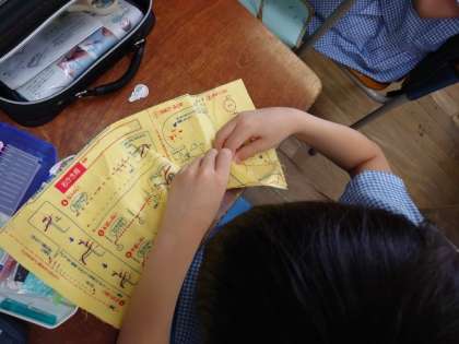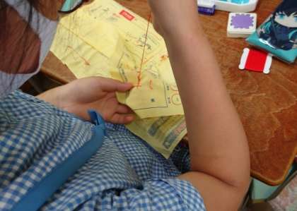 調理実習はまだできませんが、裁縫の手縫いはいろいろな縫い方を練習中です。