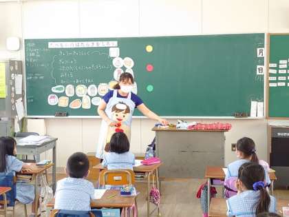 給食で食べる食べ物が、からだの中でどのような働きをしているのかを考えました。