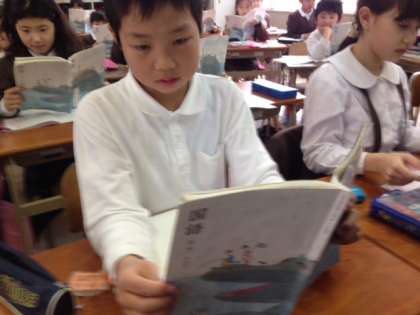 いっしょうけんめい音読していました。何を読んでいるのでしょう?