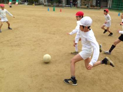 運動場の状態がよくありませんでしたが、5時間目には体育ができました。金曜日に引き続き、ちがうクラスの友だちとチームを組み、サッカーのゲームを楽しみました。みんな、上手になりました。