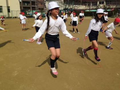 今日は全クラス合同で、リズムなわとびとドッジボール大会をしました。
