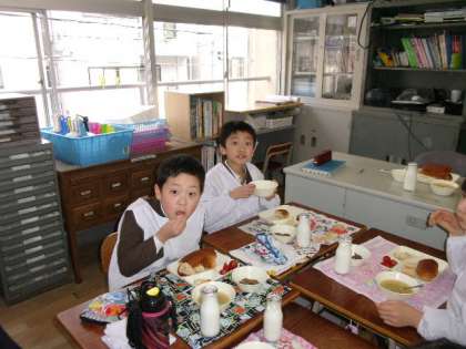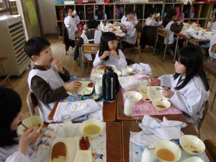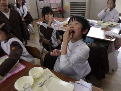今日は、みんなが楽しみにしていた、1年間で一番豪華な献立でした。6年生のご卒業をお祝いしてみんなで楽しく食べました。