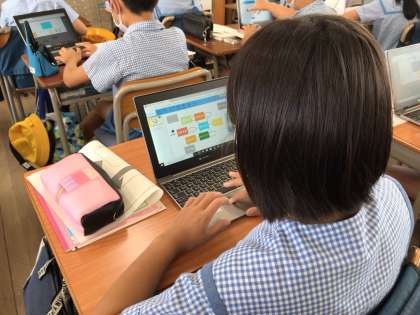 環境問題を題材に子どもたちはパソコン上にウェビングマップを作成しました。