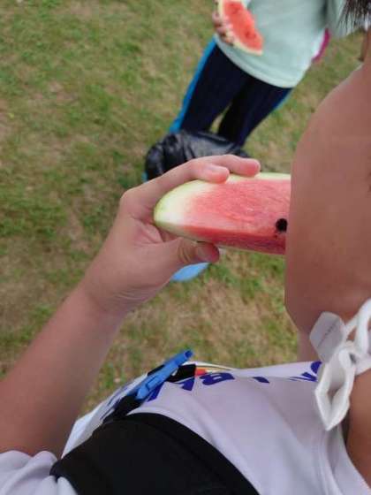 高丸山から下山したので、スイカのおやつタイムです。