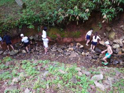 5年生 林間学習「魚つかみと川遊び」