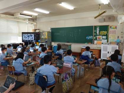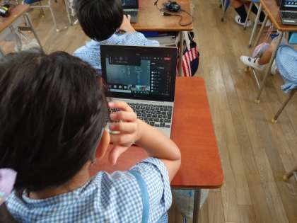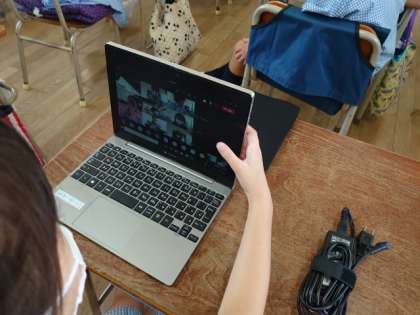 お家の人がそばにいなくても双方向通信ができるように、1人1台端末を自分で操作して、Teamsが使えるように練習しました。
