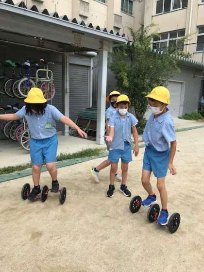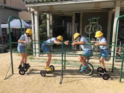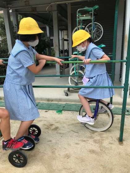 今年度集まったベルマークから、一輪車の練習器具を購入していただきました。早速たくさんの児童が使っており、楽しそうに休み時間を過ごす姿が見られました。