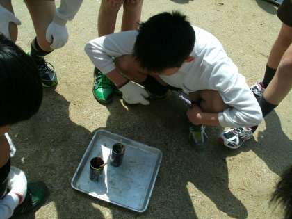 ものが燃えるときの様子を実験しました。