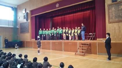 平成27年度 見守り隊・にっしーパトロール隊の方のご紹介と児童からお礼と「よろしくお願いします」とごあいさつをしました。