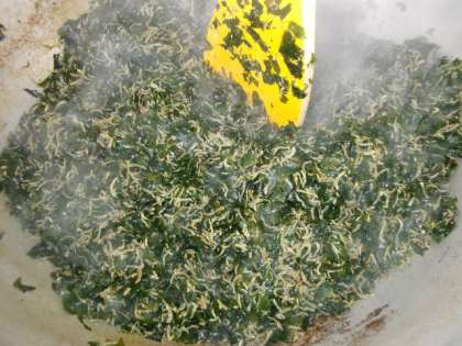 今日の給食は「ごはん、豚肉の甘辛焼き、みそ汁、じゃこわかめ、牛乳」でした。じゃこわかめは、ごはんが食べやすいように考えられた手作りのふりかけです。わかめとちりめんじゃこだけを使っています。しっかり炒ってパラパラにし、みりんとしょうゆだけで味つけをしました。