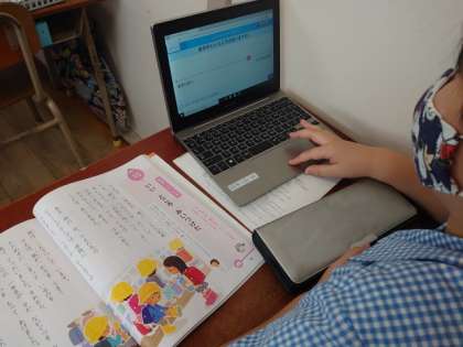 自分によいところはあるかな?という問いに、1人1台端末のポジショニングという機能を使って、自分の考えを表現し、みんなで共有していました。