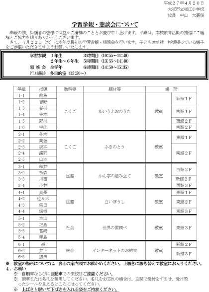 学習参観・懇談会・PTA決算総会