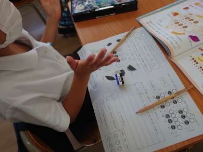 「い・ち・ご」「オ・ム・ラ・イ・ス」など、リズムにのって上手に手拍子をしていました。