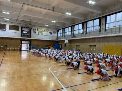 組体操は、新型コロナウイルス感染対策のためできませんが、一人技は、演技に取り入れます。汗拭きタオル、水筒、足拭きタオル、ビニール袋は、忘れずに持参させてください。