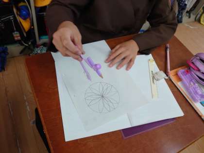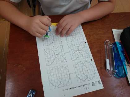 今日はコンパス使って模様を描きました。