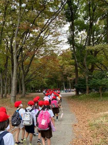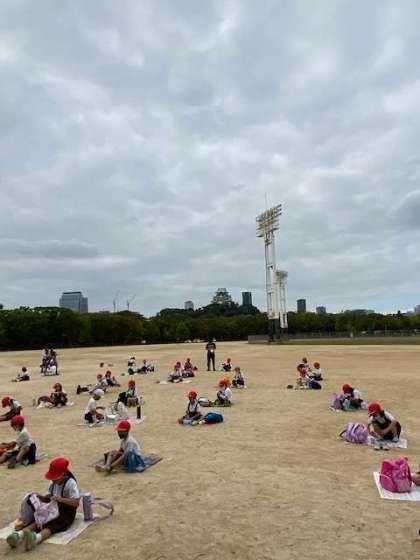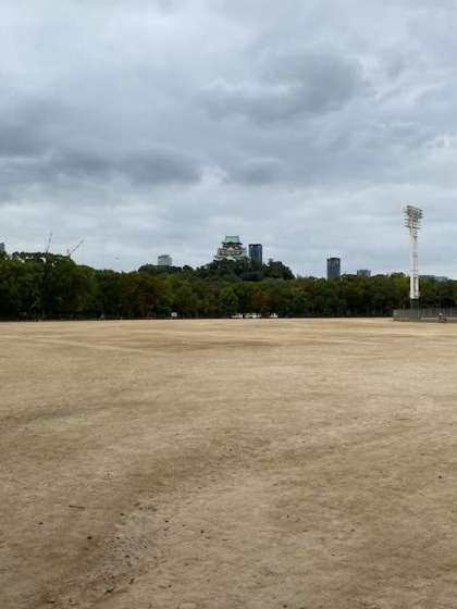 太陽の広場へ移動して、大阪城を背景に昼食です