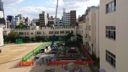 工事現場のプレハブが解体され、10月29日までに運動場の整地が行われ元に戻ります。